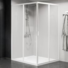 Corner entry shower enclosure, 2 sliding doors + 2 fixed panels