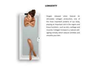 LONGEVITY Micro-bubbles have a peeling effect on your skin and leave it hydrated. The collagen production is stimulated by an increased level of oxygen: Natural Air becomes your greatest natural friend against ageing.