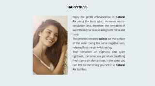 HAPPYNESS Have you ever felt good while strolling by the sea? The reason are the anions: Generated by Natural Air, they lift your mood and reduce stress by increasing serotonin in your body.